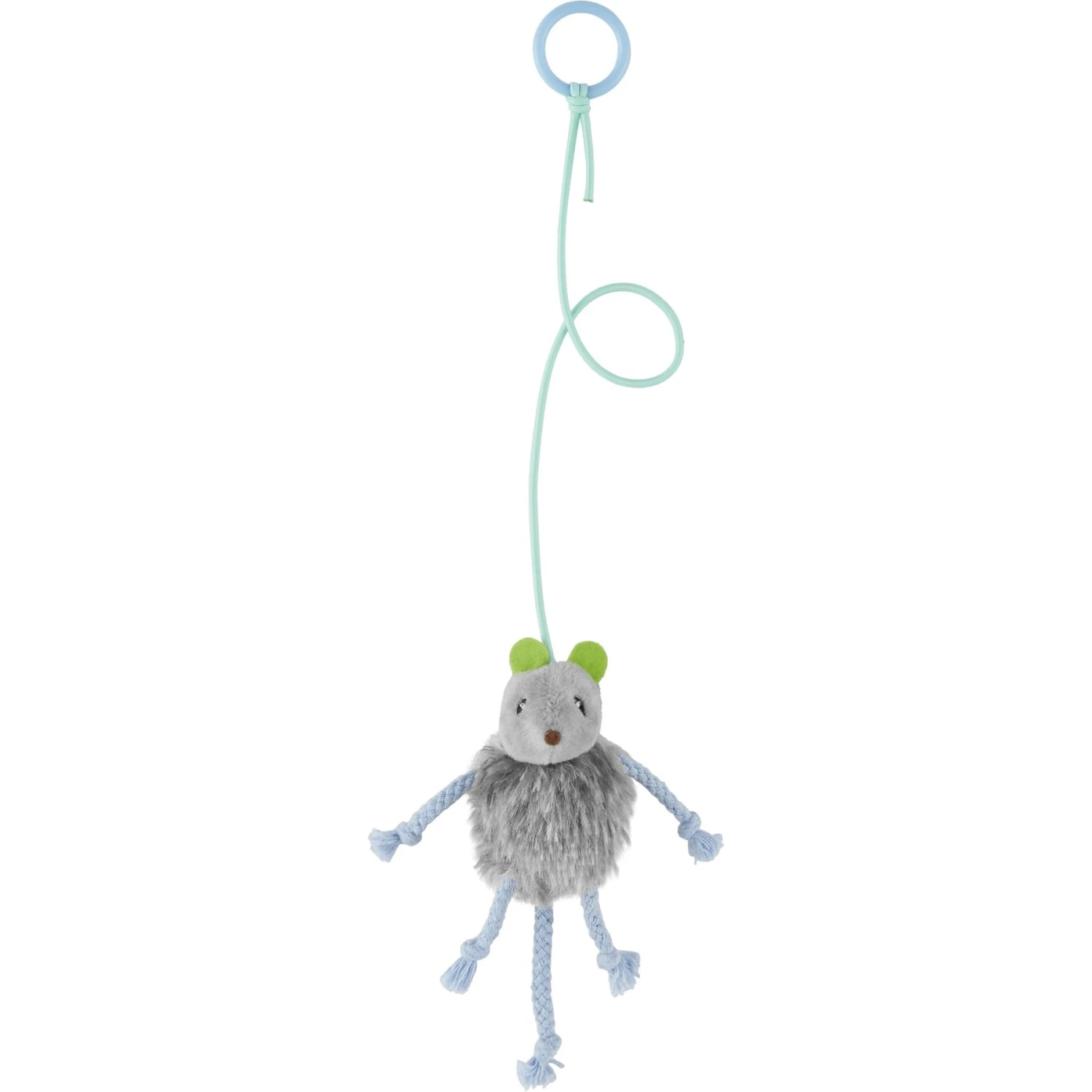 - This fuzzy mouse, braided string and bouncy bungee cord make this cat toy a playtime go-to.