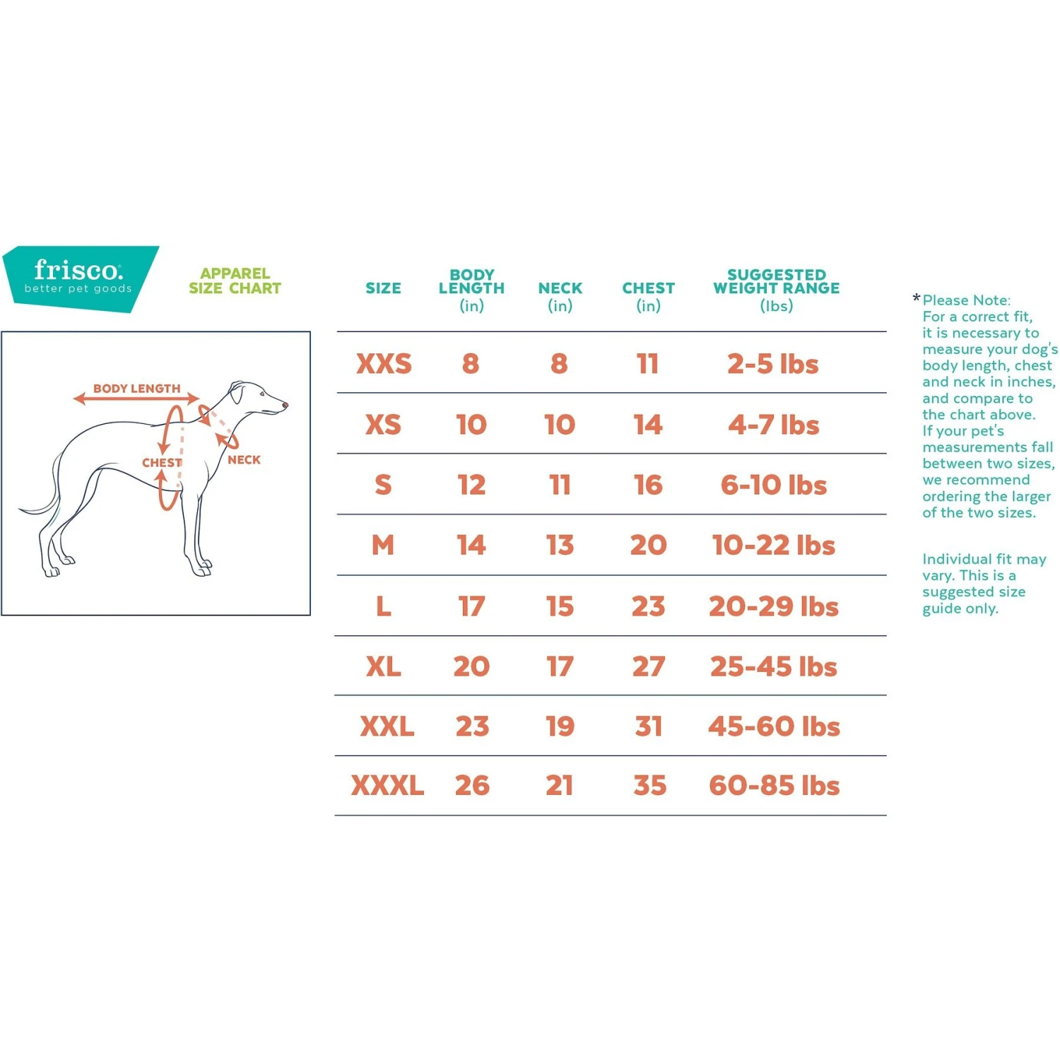 Intended to be used for short duration, under close supervision. Always supervise pet to ensure they do not destroy or ingest product. May contain small parts. Not suitable for children. Inspect regularly and replace if any part becomes damaged. For the perfect fit, measure your pet carefully when selecting a size from the Size tab. Sizing recommendations per breed are only guesstimates, since no two dogs are exactly alike.