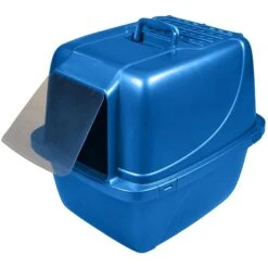 - Fits most standard litter boxes and has a hinged double door to make cleaning super easy.
