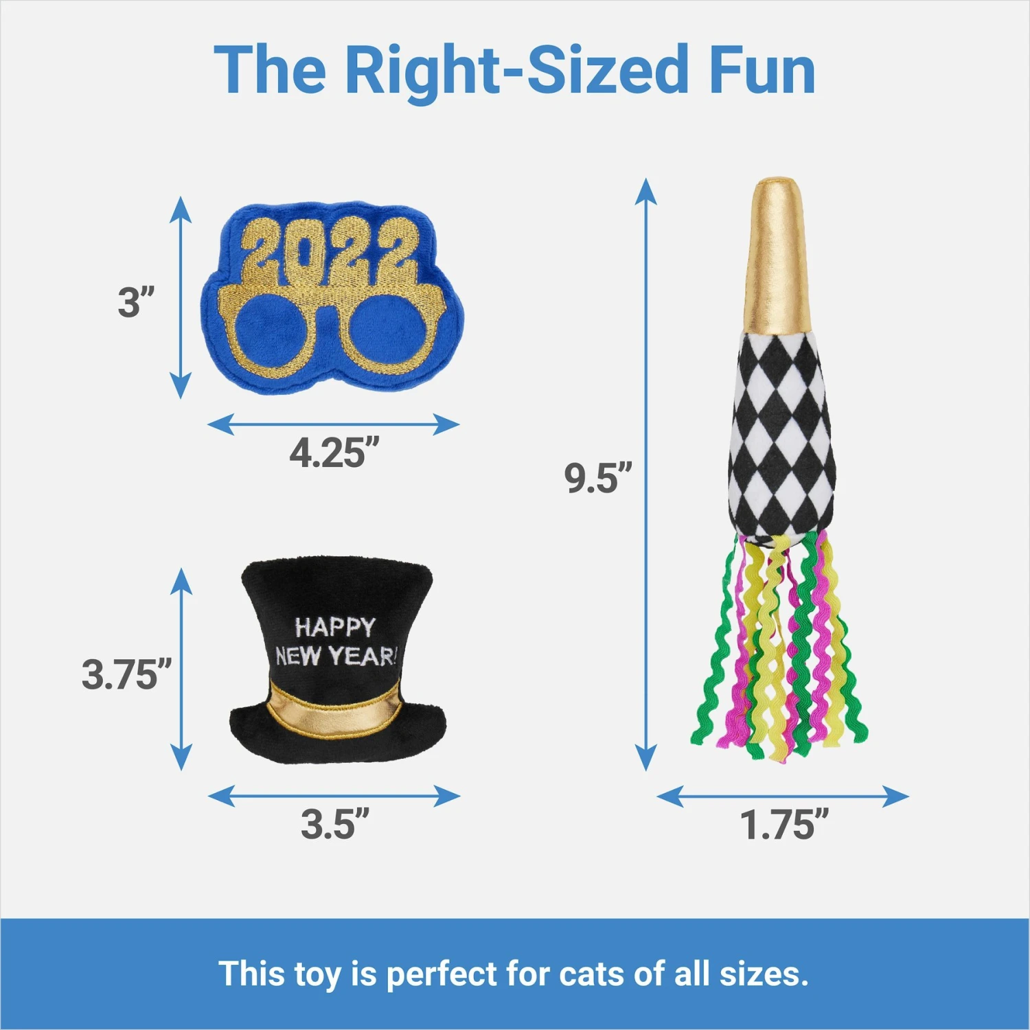 - New Year’s plush cat toy set is the perfect gift to bring some holiday cheer to your kitty.