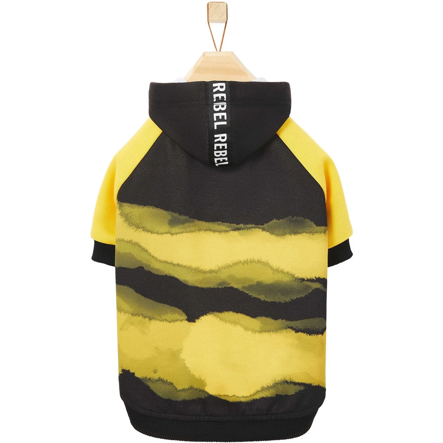 Let your pet get snuggly and styling with this cozy athleisure tie-dye hoodie. It’s made of cozy fleece to keep them warm and comfy, with a watercolor effect print that’s very street meets artsy cute. The stretchy ribbing on the chest ensures a snug fit from the playdate to the park day and every occasion, with a leash hole so you can always be ready to go. The “Rebel” print on the hood makes a fashion statement, literally, and the high-cut belly means pets can go potty in style without thinking twice.