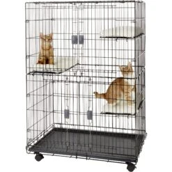 Frisco Collapsible Wire Cat Cage Playpen & Van Ness High Side Corner Cat Litter Pan, Blue